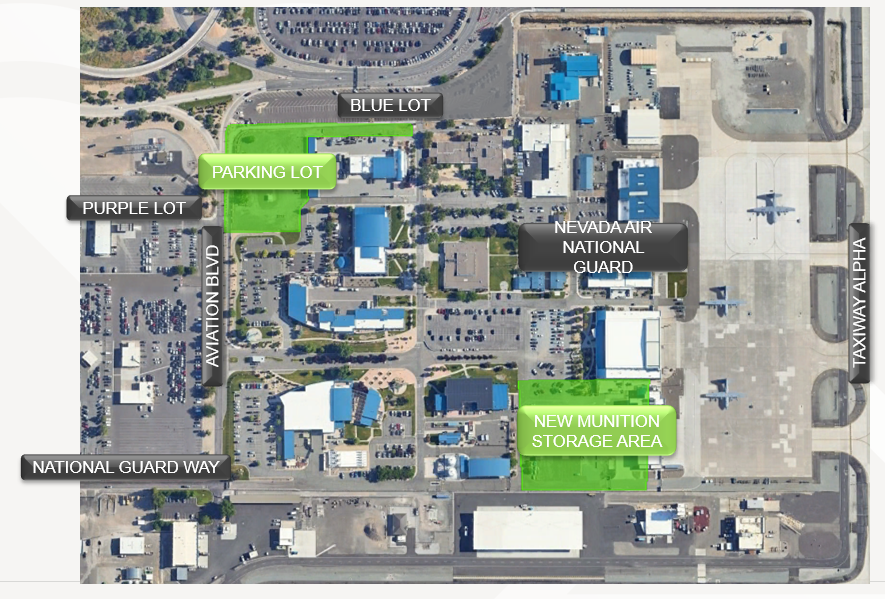 | Project Description: | Relocate the existing munitions storage area on the Nevada Air National Guard Base and design and construct a parking lot south of the existing Blue Lot. |